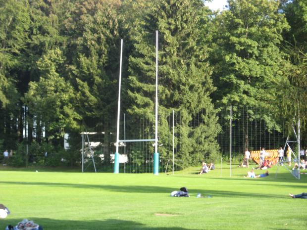 A la veille de l'arrivée du club professionnel Racing Metro 92 pour son stage d'entraînement, le centre sportif du Chalet-à-Gobet a été transformé en terrain de rugby.